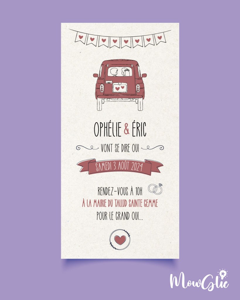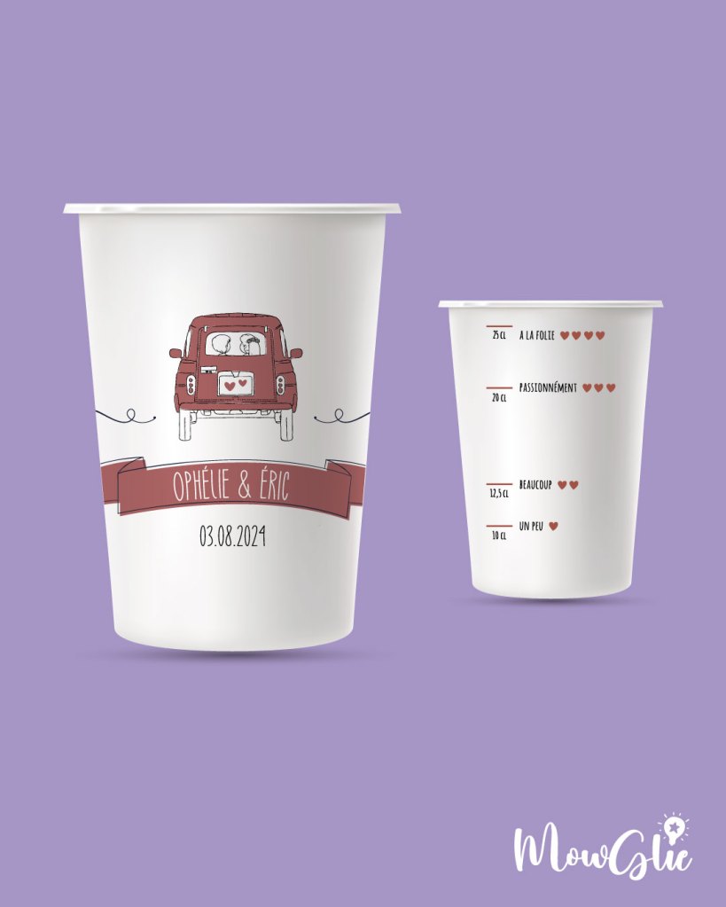 Création du faire-part, des gobelets, sticker véhicule…