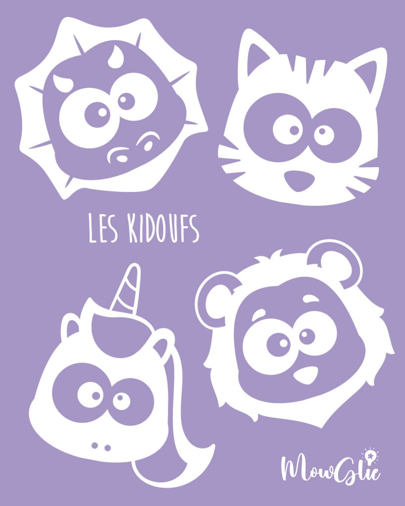 Une collection de mascottes un peu oufs pour les kids, pour personnaliser leurs affaires scolaires. Des sacs et trousses pour petits et grands personnalisés avec leur prénom et le kidouf de leur choix !