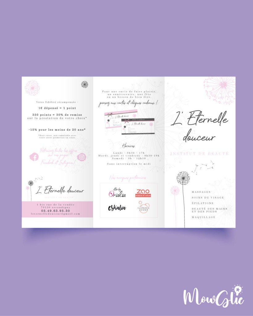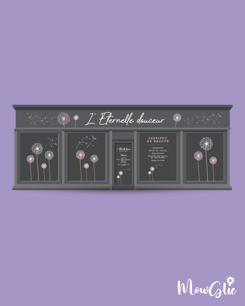 Création de l’identité visuelle, enseigne, carte de prestations, carte cadeau…